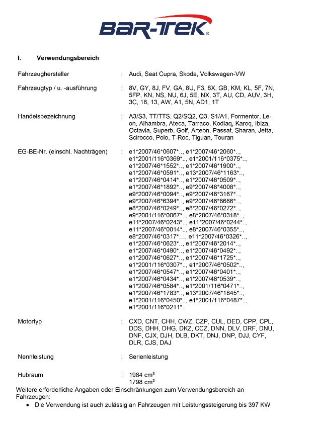 (z.B. Golf 7 GTI/R, Golf 8 GTI/R, Tiguan R, T-ROC R, Audi S3 8V, Audi S3 8Y, Audi TTS 8S, Seat Ateca Cupra, Seat Leon Cupra 5F, Cupra Leon KL, Cupra Formentor, Skoda Octavia RS NX)